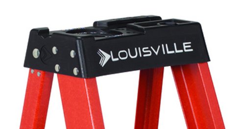 Molded top with handymans tool slots. Heavy duty bottom back brace provides additional strength to the bottom of the ladder. Spreader braces inside fiberglass rails help keep braces from getting hooked or abused during transit. Each step features heavy duty steel gussets secured with large-headed, semi-tubular steel rivets for maximum strength. Vertically mounted U-shaped back braces spaced on one foot intervals provide maximum stiffness and discourage unsafe climbing.